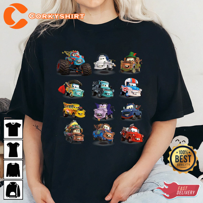 Pixars Cars Many Maters Disney Cars Tow Cartoon T-shirt