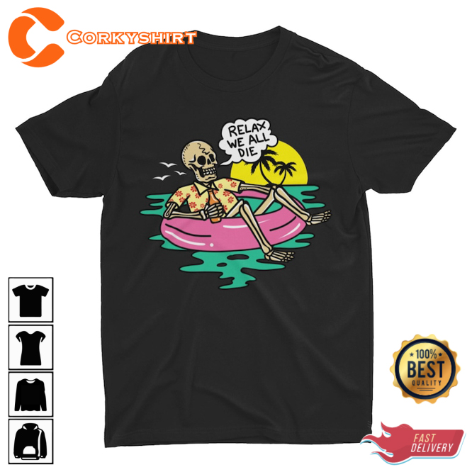 Relax We All Die Funny Edgy Skeleton Silly Humor Joke T-shirt