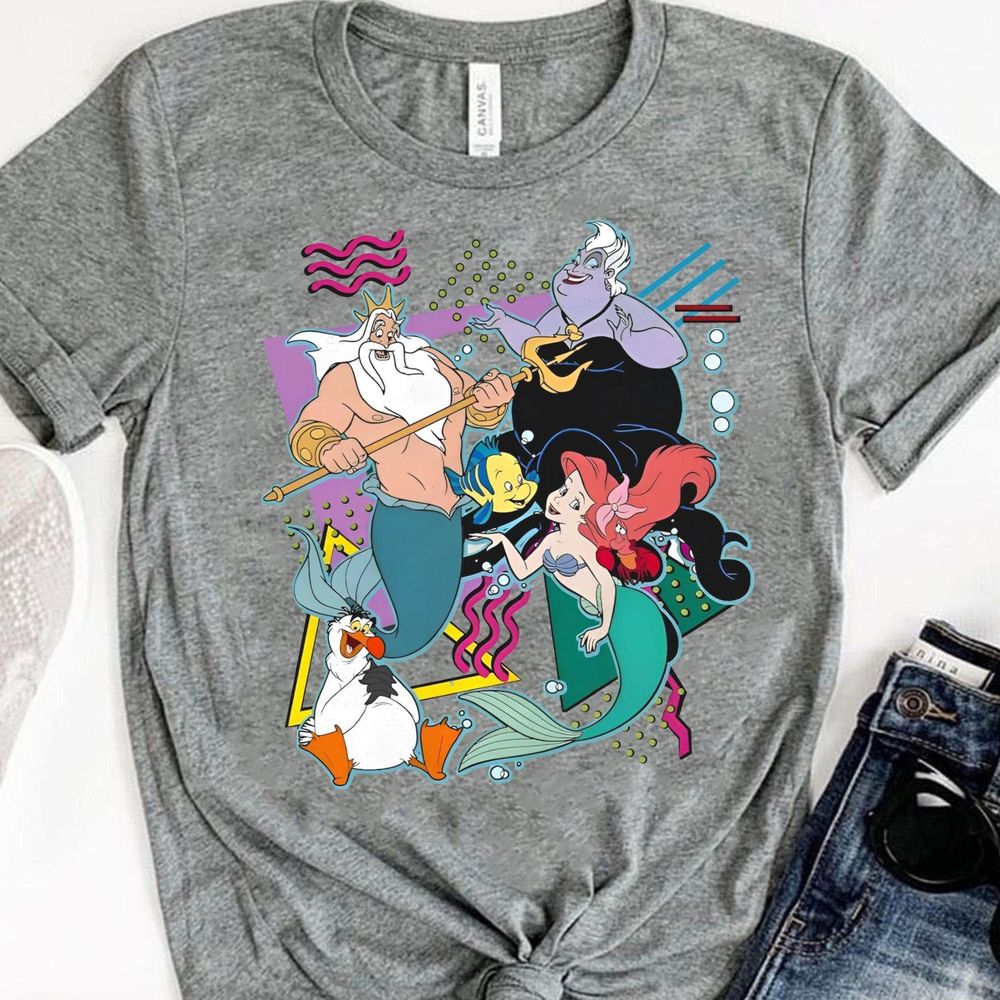 Retro 90s Style Group Shot The Little Mermaid Shirt