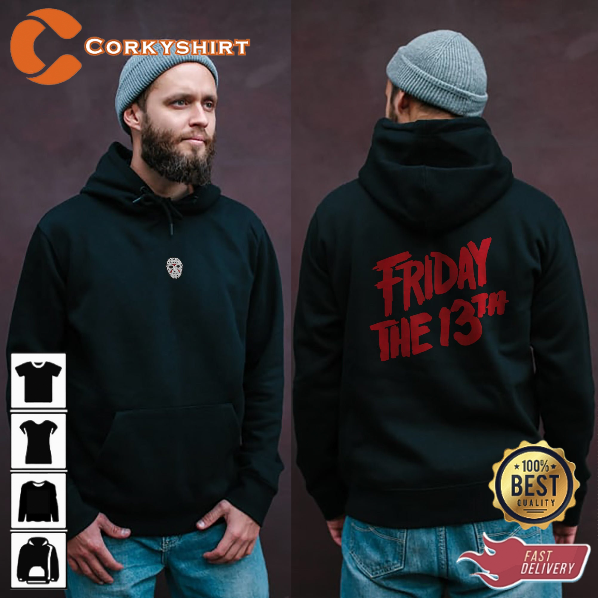 Friday The 13th Hoodie Embroidered Jason Voorhees Mask Logo Shirt