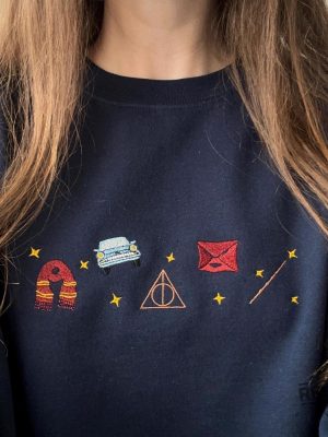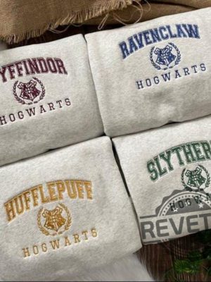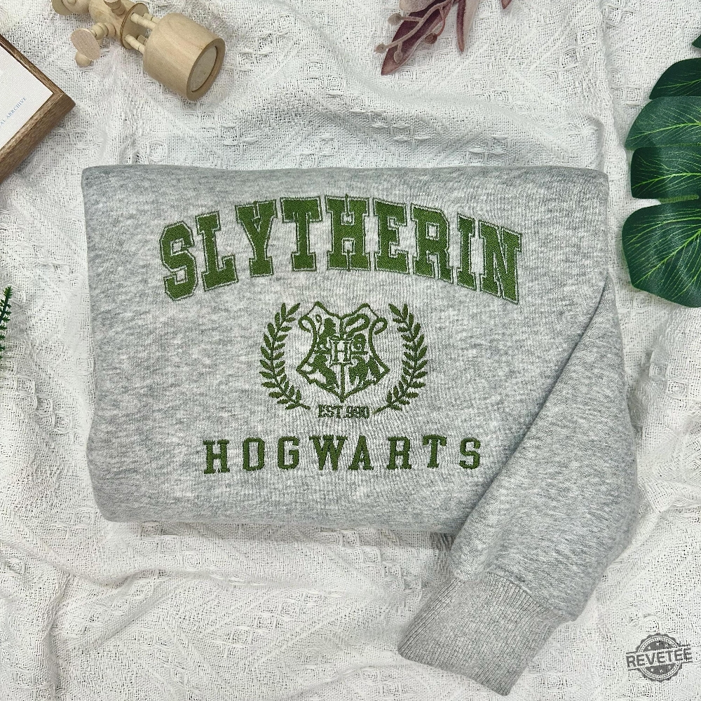 Harry Potter Slytherin Houses Embroidered T Shirt Hoodie Sweatshirt Tee Gift For Fan Ravenclaw Gryffindor Hufflepuff Hogwarts Crewneck Unique