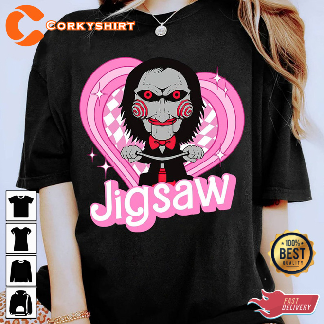 Jigsaw Pink Dolls Horror Halloween Saw Movie Funny Halloween Party T-shirt