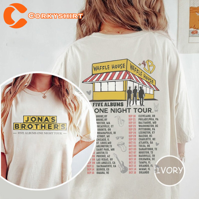 Jonas Brothers 5 Albums One Night Tour Waffle House Double Sided T-shirt